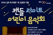 [ 포에버뉴스 김경순 기자 ] 김포시 도서관은 2026 김포 독서대전의 시작을 알리는 공연으로 '캔들 라이트 어린이 음악회'를 2026년 3월 12일 19시 10분부터 20시 10분까지 모담도서관 1층 다목적강당에서 진행한다. 봄빛이 스며들듯 1200~1300개의 LED캔들을 켜고 앙상블 여운팀이 디즈디 메들리와 지브리 메들리, 어린이들이 따라 부를 수 있는 인기 동요를 연주한다. 또한 공연이 끝나면 '모아봐요 스탬프북'을 배포하여 올해 김포시 도서관에서 진행하는 독서문화진흥 프로그램을 참여 후 스탬프를 모아 2026 김포 독서대전 행사에서 활용할 수 있도록 안내한다. 도서관 관계자는 “이번 공연은 2026 김포 독서대전을 알리고, 어린이와 가족들이 도서관에서 다양한 독서 활동과 행사를 참여 할 수 있도록 응원하는 자리로, 김포시 도서관은 올해 독서대전 슬로건 '책, 일생의 기쁨'에 맞게 전 연령층이 함께할 수 있는 독서문화진흥 프로그램을 기획할 예정”이라고 말했다. 참여 신청은 2026년 2월 24일 10시부터 김포시 통합예약 누리집 (모집/행사)에서 진행한다.