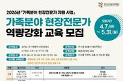 [ 포에버뉴스 김경순 기자 ] 경기도여성가족재단은 4~6월 총 5회에 걸쳐 경기도 내 가족분야 전문상담사 250명을 대상으로 가족분야 현장전문가 역량강화 교육을 실시한다. 이번 교육은 가족분야 상담을 필요로 하는 경기도민에게 보다 전문적이고 다양한 영역의 상담서비스를 제공할 수 있도록, 현장에서 활동하는 상담사의 실천 역량을 강화하기 위해 마련됐다. 최근 가족분야 상담 현장에서 중요성이 커지고 있는 우울·자살 위험, 중독, 은둔·고립, 장애·입양 등 다양한 유형별 특성과 주요 이슈에 대한 이해 및 상담사례 등으로 현장에서 곧바로 적용할 수 있도록 프로그램을 구성했다. 모집대상은 경기도 내 가족분야 전문상담사이며, 교육은 차수별 50명 내외로 총 5차에 걸쳐 운영된다. 신청기간은 4월 7일부터 5월 31일까지이며, 재단 누리집을 통해 차수별로 선착순 모집한다. 김혜순 재단 대표이사는 “이번 역량강화교육은 도내에서 활동하는 가족분야 전문상담사들의 상담 현장 대응력과 전문성 제고를 위해 기획한 것”이라면서 “가족분야 현장전문가들과 함께 할 수 있는 사업을 마련하겠다”고 말했다.
