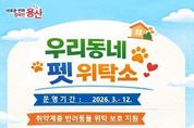 [ 포에버뉴스 김경순 기자 ] 서울 용산구가 경제적 어려움이나 입원 등으로 장기간 집을 비워야 하는 상황에서 반려동물을 돌보지 못하는 취약계층의 부담을 덜기 위해 ‘2026 우리동네 펫 위탁소’ 사업을 추진한다. 취약계층은 반려동물 돌봄 공백이 유기나 방치로 이어질 가능성이 높다는 점에서, 안전한 보호 체계를 구축하고 반려동물과 보호자가 함께 안정적인 생활을 이어갈 수 있도록 지원한다는 방침이다. 이번 사업은 올해 12월까지 운영하며, 지역 내 주민등록을 둔 취약계층을 대상으로 한다. 지원 대상은 ▲기초생활수급자 ▲차상위계층 ▲한부모가족 ▲범죄피해자 ▲1인가구 등이며, 동물등록이 완료된 반려동물에 대해 위탁보호 비용을 지원한다. 지원 기간은 최대 10일이며, 1인가구는 소득 기준과 관계없이 반기별 5일까지 이용할 수 있다. 지원 금액은 반려동물의 무게와 종에 따라 차등 적용한다. 반려견의 경우 ▲4kg 미만, 1일 3만 원 ▲4kg 이상 20kg 미만, 4만 원 ▲20kg 이상, 5만 원이며, 반려묘는 무게와 관계없이 1일 5만 원을 지원한다. 지원 기준을 초과하는 기간에 대해서는 보호자가 비용을 부담한다.