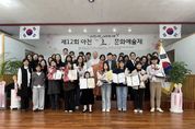 [ 포에버뉴스 김경순 기자 ] 재단법인 아천문화교류재단(ACEF)이 주최-주관한 '제12회 아천효문화예술제’가 11월 1일 오후3시 아천문화교류센터에서 시상식이 개최됐다. 이날 행사에는 부모사랑 나라사랑의 올바른 가치관을 심어주기 위해 문화예술 부문의 우수한 인재들을 발굴 시상하고 올해로 12회를 맞았다. 시상식은 이승훈의 사회로 식전행사에 노 오케스트라의 연주를 시작으로 개회식, 국민의례등의 순서로 진행되었으며, 재단법인 아천문화교류재단 이사장인 성민스님은 인사말을 통하여 로마 제국시대의 철학자, 정치가, 작가, 그리고 스토아 철학의 대표인물인 루키우스 안나이우스 세네카의 말을 빌어서 인생은 철학이고, 철학은 삶이라고 하면서 평안속에서 행동으로 옮기는 삶이 진정으로 미래를 꿈꾸는 삶이라고 이야기하면서 수상자분들의 축하의 말씀과 더블어 그들의 삶이 희망과 꿈이 넘치기를 믿는다고 피력했다. 수상과 관련, 최고상인 국회의장상에는 고봉국님, 특별상인 문화체육관광부장관상에는 목포애향중학교 송은유학생, 학생부종합대상에는 한밭여자중학교 이인혜학생, 서울특별시장상에는 정호겸, 권수지님. 경기도지사상에는 박상우, 윤세화님, 인천시