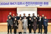 [ 포에버뉴스 김경순 기자 ] 2026년 제4기 주민자치협의회가 출범하며 새로운 도약을 알렸다. 김포시는 28일 시청 대회의실에서 14개 읍‧면‧동 4기 주민자치회장으로 구성된 주민자치협의회의 첫 정기회의를 개최하고, 본격적인 4기 주민자치회 운영의 시작을 알렸다. 이날 회의는 ▲위촉장 수여 ▲임원선출 ▲정기회의 ▲자체회의 순으로 진행됐으며, 2026년 주민자치협의회를 이끌어갈 임원으로 황도연 회장(장기본동), 조권창 부회장(하성면), 김현숙 감사(양촌읍), 장재용 정책국장(대곶면), 장보람 사무국장(마산동)이 선출 및 선임되며 협의회 구성을 마쳤다. 정기회의에서는 향후 주민자치협의회의 운영 방향을 논의하고 새로운 임기 출범에 맞춰 자치회 일원으로서의 책임과 역할을 되새기는 시간을 가졌다. 이번에 선출된 김포시 황도연 주민자치협의회장은 “4기 주민자치협의회의 첫 출발을 함께해 주신 자치회장들께 감사드린다”며, “주민자치의 새로운 도약을 이끄는 시기인 만큼, 각 자치회장님들과 함께 힘을 모아 김포시 주민자치 발전에 기여하는 협의회를 만들어 가겠다.”고 소감을 밝혔다. 김병수 시장은 “주민자치회는 지
