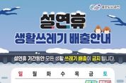 [ 포에버뉴스 김경순 기자 ] 금천구는 설 연휴 기간 생활쓰레기(일반생활쓰레기, 음식물쓰레기, 재활용품) 수거를 일시 중단한다고 밝혔다. 청소대행업체 환경미화원들의 휴식권을 보장하고 안전한 근무 환경을 조성하기 위한 조치라고 구는 설명했다. 이에 따라 14일부터 17일까지 4일간 생활쓰레기 배출이 금지된다. 연휴 기간 중 배출하지 못한 생활쓰레기는 18일 오후 6시부터 배출하면 19일 0시부터 수거할 예정이다. 구는 생활쓰레기 배출이 일시 중단됨에 따라 14일부터 18일까지 5일간 주민 불편을 최소화하기 위한 청소상황실과 환경공무관 기동반을 편성·운영하겠다고 밝혔다. 생활쓰레기 관련 민원에 신속히 대응한다는 방침이다. 또한 연휴가 끝나는 19일부터 인력과 장비를 총동원해 적체된 생활쓰레기를 일제 수거할 계획이다. 유성훈 금천구청장은 “"평소에 묵묵히 금천의 청결을 책임지고 있는 환경미화원 분들께 감사드린다“라며 ”설 연휴 기간 생활쓰레기 수거를 중단해 불편하시겠지만 많은 이해와 적극적인 참여를 부탁드린다”라고 말했다.