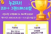 [ 포에버뉴스 박정배 기자 ] 이천시는 행정안전부 주관 ‘2025 코리아그랜드페스티벌(KOREA GRAND FESTIVAL)’에 맞춰 지역화폐 이용을 촉진하고 지역 상권을 활성화하기 위한 ‘이천사랑 지역화폐 캐시백 5% 이벤트’를 추진한다고 밝혔다. 이번 행사는 10월 29일부터 11월 9일까지 12일간 전국에서 동시에 개최되는 코리아그랜드페스티벌 소비촉진 캠페인의 하나로, 이천시는 국비 1억 5천만 원을 확보해 사용자 충전금으로 결제한 금액에 한정해 결제금액의 5%를 적립금(인센티브, 정책수당 등으로 충전된 금액 사용분은 지급 대상에서 제외)으로 지급한다. 이용자는 이천사랑지역화폐를 통해 1인당 최대 20,000원까지 5% 적립금을 받을 수 있으며, 별도의 신청 절차 없이 자동으로 지급된다. 지급된 적립금의 사용 유효기간은 5년이며, 이천시 지역화폐 가맹점에서 자유롭게 사용이 가능하다. 이천시는 이번 행사를 통해 시민의 실질적인 소비 혜택과 지역 상권 활성화를 동시에 도모할 계획이다. 김경희 이천시장은 “코리아그랜드페스티벌 이천사랑지역화폐 캐시백 이벤트를 통해 지역 소비가 활발히 이어지고, 소상공인 매출 회