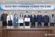 [ 포에버뉴스 김경순 기자 ] 인천광역시 계양구는 안전문화 정착 및 민관 협력 네트워크 강화를 위해 3일 구청 영상회의실에서 ‘안전문화운동 추진협의회’ 회의를 개최했다. ‘계양구 안전문화운동 추진협의회’는 지속가능한 안전문화 확산을 목표로 계양구 지역 공공기관장 및 민간단체장 등 19명으로 구성된 협의체로, 구민 안전의식 제고를 위한 캠페인 및 홍보, 안전교육 발굴 등 지역사회 안전문화 진흥의 중심 역할을 담당하고 있다. 이번 회의에서는 ▲2025년 안전문화운동 추진실적 및 2025년 시행계획 보고 ▲겨울철 자연재난(대설) 대응계획 공유 ▲안전문화 실천방안에 대한 의견수렴이 이뤄졌다. 참석 위원들은 실효성 있는 안전문화운동 실천 방안과 민관 협력 강화를 위한 다양한 의견을 제시하며 활발한 논의를 펼쳤다. 윤환 계양구청장은 “재난 유형이 갈수록 다양해지고 복잡해지는 만큼 모든 기관과 단체가 유기적으로 협력하는 것이 무엇보다 중요하다.”라며 “민관이 함께하는 안전문화운동 추진협의회를 통해 실질적인 협조체계를 구축하고, 구민이 체감할 수 있는 안전한 계양구를 만들어 나가겠다.”라고 말했다.