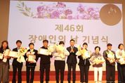 [ 포에버뉴스 김경순 기자 ] 안양시는 20일 오후 2시 시청 강당에서 제46회 장애인의 날 기념식을 열고 장애인과 비장애인이 함께 어우러지는 화합의 장을 마련했다고 밝혔다. '당연한 일상, 모두가 누릴 수 있도록'을 주제로 (사)안양시장애인단체총연합회가 주관한 이날 행사에는 관내 장애인 단체 회원과 장애인 복지 시설 종사자, 시민 등 900여 명이 참석했다. 기념식 행사는 장애인 인권 헌장 낭독을 시작으로 장애인 인권·복지 증진에 기여한 모범 장애인과 장애인 복지 유공자 등 30명에 대한 표창 수여, 저소득 이웃을 위한 안양시장애인단체총연합회 생활지원금 전달 순으로 진행됐다. 특히 이날 행사는 장애인들이 직접 주도하는 문화 축제 형식으로 꾸며졌다. 'KBS 아침마당-도전 꿈의 무대' 우승자인 장애인 가수 임일주 씨의 축하 공연을 비롯해 장애인복지회 소속 '소소별별'의 악기 연주, 장애인 부모연대의 경기민요 공연이 이어져 참석자들의 호응을 얻었다. 시청 홍보홀과 민원실 앞 광장에서는 장애인의 자립을 보여주는 부대 행사도 마련됐다. 발달 장애인 바리스타가 운영하는 이동식 카페 '마카롱'이 문을 열었
