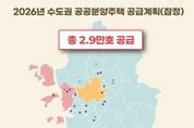 [ 포에버뉴스 사공선 기자 ] 국토교통부와 4개 공공기관은 ’26년 수도권 공공택지에서 총 2.9만호 규모의 공공분양주택을 순차적으로 공급할 계획이라고 밝혔다. 이번 공급 물량은 새정부 「주택공급 확대방안」(9·7대책)에서 발표한 수치(2.7만호) 대비 약 2천호 증가한 규모로, 판교(2.9만호)급 신도시를 하나 새로 조성한 것에 준하는 수준이다. 특히, 4개 공공기관의 올해 분양 물량(2.2만호)보다 32.2% 증가했고, 최근 5년간 평균 수도권 분양 물량(1.2만호)의 약 2.3배 수준으로, 공공 부문의 착공 확대 노력의 성과가 가시화되며, 공급 확대 국면으로 전환되고 있음을 보여준다. 내년에 분양될 단지들을 살펴보면, 지역별로는 △서울 1.3천호, △인천 3.6천호, △경기 23.8천호로 분포되어 있고, 주요 지구별로는 △3기 신도시 7.5천호, △2기 신도시 7.9천호, △기타 중소택지 13.2천호의 공공주택이 분양될 예정이다. 3기 신도시에서는 △고양창릉(3,881호), △남양주왕숙(1,868호), △인천계양(1,290호), 2기 신도시에서는 △광교(600호), △평택고덕(5,134호)