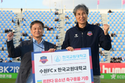 [ 포에버뉴스 김경순 기자 ]수원FC가 지난 2일 수원종합운동장에서 열린 하나은행 K리그1 2025 35라운드 대구FC전에 앞서 르완다 청소년 축구용품 기증식을 열었다. 수원FC는 2025년 1월 17일부터 2월 13일까지 진행된 한국교원대학교 해외교육봉사 활동을 통해 세계 최빈국 중 하나인 르완다의 초·중·고등학생 1,319명에게 축구용품을 전달했다. 이번 기증식은 그 뜻깊은 나눔을 기념하기 위해 마련된 행사로, 수원FC 최순호 단장과 봉사단을 이끈 한국교원대 정구인 부총장이 참석해 양 기관의 협력 의의를 되새겼다. 행사에서는 르완다 청소년들이 수원FC에 전한 감사 영상편지가 경기장 전광판을 통해 상영됐다. 영상에는 수원FC의 유니폼을 입은 르완다 학생들이 “고맙습니다, 수원FC!”를 외치며 춤을 추는 모습이 담겨, 현장 분위기를 훈훈하게 만들었다. 수원FC는 이번 기증을 통해 단순한 물품 지원을 넘어, ‘축구를 통한 국제 나눔과 교육 협력’이라는 사회적 가치을 실천하고자 했다. 구단은 앞으로도 해외 및 국내 청소년을 대상으로 한 사회공헌 활동을 지속적으로 추진할 계획이다. 수원FC 최순호 단장은 “르완다 아이들의 밝은 미소를 보며 축구가 가진 진정한 힘을