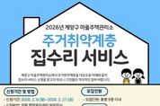[ 포에버뉴스 김경순 기자 ] 인천광역시 계양구는 작전동에 운영 중인 마을주택관리소에서 주거취약계층을 위한 집수리 서비스를 추진한다고 밝혔다. 올해 추진되는 집수리 서비스는 2025년 5차 신청 81가구에 대한 집수리가 지난해 12월 완료됨에 따른 사항으로, 오는 2월 9일부터 27일까지 관할 동 행정복지센터에 방문해 신청할 수 있다. 신청 서식과 세부 사항은 계양구청 누리집 ‘공지사항’에서 확인 가능하다. 신청 대상은 사용승인(준공) 이후 20년 이상 경과한 노후・불량 단독 및 공동주택 ('공동주택관리법'에 따른 관리주체가 있는 공동주택을 제외)에 거주하는 계양구 주민 중, 65세 이상 고령자, 독거노인, 장애인, 국가유공자 등 집수리 지원이 필요한 주거취약계층이다. 신청 분야는 도배・장판・샤워기・변기・방충망 등의 경보수 집수리이며, 현장 점검 후 집수리 교육을 이수한 자원봉사자들과 함께 작업이 진행될 예정이다. 구 관계자는 “접수된 신청 사항을 바탕으로 집수리 전문 인력이 현장을 방문해 수리가 필요한 부분을 면밀히 점검하고, 신속하게 지원하겠다.”라며 “주거 취약계층의 생활 불편을