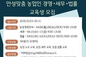 [ 포에버뉴스 김경순 기자 ] 안성시농업기술센터가 지역 농업인의 안정적인 영농 활동을 돕기 위해 오는 31일까지 ‘안성맞춤 농업인 경영·세무·법률 교육’ 교육생을 모집한다. 이번 교육은 전문가 특강을 통해 농가 운영 중 발생할 수 있는 경영적, 법적 문제를 사전에 예방하고 해결할 수 있는 역량을 키워주기 위해 마련됐다. 교육은 오는 4월 6일부터 30일까지 주제별 지정된 날짜에 진행된다. 모집 분야는 ▲농업 경영 ▲농업 세무 ▲농업 법률 등 3개 과정이며, 분야별로 30명씩 총 90명을 선발한다. 신청 인원이 초과할 경우 내부 선발 기준에 따라 교육생을 최종 선정할 예정이다. 신청 자격은 농업 경영에 관심 있는 안성시민이라면 누구나 가능하며, 접수는 3월 31일까지다. 참여를 희망하는 시민은 이메일을 보내거나 농업기술센터 농업지도과(보개원삼로 219)를 방문해 신청하면 된다. 시 관계자는 “농업인의 눈높이에 맞춘 경영·법률·세무 전문가 특강이 농가 역량을 강화하는 좋은 기회가 될 것”이라며, “안성 농업의 내실을 다지고 싶은 시민 여러분의 많은 관심과 참여를 바란다”고 말했다.