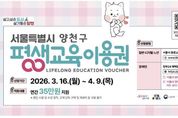 [ 포에버뉴스 김경순 기자 ] 양천구는 구민의 역량 개발과 평생학습 기회 확대를 위해 ‘2026년 평생교육이용권 지원사업’을 본격 추진하고, 4월 9일까지 신청자를 모집한다고 밝혔다. 올해 지원 규모는 총 847명이며, ▲일반 저소득(19세 이상 기초생활수급자 및 차상위) ▲디지털(30세 이상) ▲노인(65세 이상) ▲장애인(19세 이상 등록 장애인) 등 4개 분야로 나눠 모집한다. 선정된 대상자에게는 1인당 35만 원의 포인트가 지급되며, 양천구 평생학습관을 포함해 평생교육이용권 사용 등록기관(전국 3,651개, 양천구 22개 기관)에서 강좌 수강료와 교재비로 사용할 수 있다. 단, 디지털 이용권은 인공지능·정보기술 교육 등 미래 역량 강화를 위한 강좌를 운영하는 지정기관에서만 사용 가능하다. 사용 기간은 포인트 지급일부터 2026년 12월 31일까지이며, 기간 내 사용하지 않은 금액은 자동 소멸한다. 신청 대상은 19세 이상 양천구민이며, 일반·디지털·노인 분야는 서울시 평생교육이용권 누리집에서, 장애인 분야는 정부24 누리집에서 신청할 수 있다. 65세 이상 또는 장애인은 양천구 평생학습관