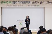 [ 포에버뉴스 김경순 기자 ] 서울 은평구는 지난달 27일 공동주택 입주자대표회의 동별 대표자를 대상으로 ‘2026 공동주택 입주자대표회의 운영·윤리교육’을 실시했다고 밝혔다. 공동주택 입주자대표회의 운영·윤리교육은 '공동주택관리법'에 따라 이수해야 하는 법정 의무교육으로, 입주자대표회의 구성원 등 176명이 참석해 공동주택 관리 관련 법령과 실무 내용을 중심으로 진행됐다. 이번 교육에는 하원선 대한주택관리사협회장과 이동현 법무법인 산하 부수석 변호사가 강사로 참여해 공동주택 관련 법령과 판례 해석, 빈발 민원 사례, 장기수선충당금 운영 등 현장에서 바로 활용할 수 있는 실무 중심 내용으로 진행됐다. 김미경 은평구청장은 “공동주택 관리에서 입주자대표회의의 역할이 점점 중요해지고 있다”며 “이번 교육이 공동주택 관리 역량을 높이고, 더 나은 주거환경을 만드는 데 도움이 되길 바란다”고 말했다.