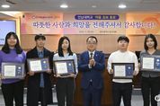 [ 포에버뉴스 오명숙 기자 ] 광주 북구의회가 26일 본회의장에서 전남대학교 봉사동아리 ‘리듬오브호프’ 회원 6명에게 의장 표창을 수여했다. ‘리듬오브호프’는 지난 7월 혼수상태에 빠진 태국인 유학생을 위해 시민들과 배우 이영애 씨가 함께 모금에 나서 총 2,300만 원의 치료비와 송환비를 마련했다. 이들의 따뜻한 정성 덕분에 학생은 지난 15일 무사히 가족의 품으로 돌아갈 수 있었으며, 선행은 지역사회에 큰 감동을 전했다. 이 같은 소식에 주한태국대사관은 “국경을 초월한 따뜻한 연대에 깊이 감사한다”며 공식 감사 서한을 전달하기도 했다. ‘리듬오브호프’는 평소에도 저소득층 환자와 소외계층을 위한 의료비 및 생계비 지원 활동을 통해 실질적인 나눔을 실천해 왔으며, 북구의회는 이러한 공로를 높이 평가해 의장 표창을 수여했다고 밝혔다. 동아리 대표 이보람 씨는 “우리는 단지 기부자와 도움이 필요한 분들을 연결하는 역할을 했을 뿐”이라며 “가장 존경받아야 할 분들은 기부자분들이라고 생각한다”고 소감을 전했다. 최무송 의장은 “학생들이 보여준 자발적 봉사와 헌신이 사회 전체에 귀