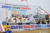 [ 포에버뉴스 오명숙 기자 ] 전남 나주시가 본격적인 영농철을 앞두고 농업인의 화합과 결속을 다지며 풍년 농사를 기원하는 영농발대식을 개최했다. 나주시는 지난 25일 영산강둔치체육공원에서 ‘2026년 농업인 영농발대식’을 열고 한 해 농사의 시작을 알렸다고 26일 밝혔다. 이번 행사는 나주농민회(회장 박용래)와 나주시여성농민회(회장 송숙희)가 공동 주관했으며 지역 농업인과 시민 등 1500여 명이 참석해 새로운 농사의 출발을 함께했다. 영농발대식은 매년 영농철을 앞두고 농업인의 무사 안녕과 풍년을 기원하고 영농 의지를 다지는 나주시 대표 농업 행사로 자리잡고 있다. 특히 기후변화와 농자재 가격 상승, 농촌 고령화와 인력 부족 등 어려운 여건 속에서 농업인의 사기를 높이고 지속 가능한 농업 발전 의지를 다지는 의미를 더했다. 이날 행사는 풍물패 길놀이 공연을 시작으로 나주시립국악단 축하공연과 고천제가 이어지며 한 해 풍년과 농업인의 안녕을 기원했다. 기념식에서는 농민회장과 여성농민회장의 대회사와 함께 전농 광주전남연맹 의장의 격려사, 농업 발전과 농민 권익 향상을 위한 결의