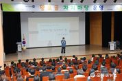 [ 포에버뉴스 오명숙 기자 ] 전남 무안군은 지난 14일 남악복합문화센터 대공연장에서 무안군민과 전직원을 대상으로 제156회 황토골 자치마당을 운영했다. 이번 황토골 자치마당은 국회의장 행사기획 자문관이자 목포대학교 특임교수인 탁현민 강사를 초청해 ‘기획의 힘, 상상력의 힘’을 주제로 진행됐으며, 창의적 행정 구현과 군민과의 공감소통을 위한 의미 있는 자리가 됐다. 탁현민 자문관은 강연에서 “기획이란 결국 사람의 마음을 움직이는 일이며, 상상력은 그 기획을 현실로 만드는 힘”이라며, “행정 역시 군민의 공감을 얻는 기획에서 출발해야 진정한 변화가 이루어진다”고 전했다. 참신한 기획력과 감각적인 연출로 주목받아 온 그는 청와대 및 국회의 주요 행사와 국가적 기획 프로젝트를 수행한 경험을 바탕으로, 현장에서 느낀 생생한 사례와 실무 중심의 조언을 전하며 큰 호응을 얻었다. 김산 군수는 “이번 강연은 단순한 행정 교육을 넘어, 공직자가 주민과 소통하고 창의적 정책을 구상하는 능력을 기르는 계기가 됐다”며, “공감과 상상력을 기반으로 한 행정이야말로 지역발전의 핵심이다”고 밝혔다. 한편, 군