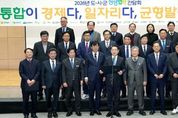 [ 포에버뉴스 오명숙 기자 ] 전라남도는 16일 전남도청 왕인실에서 ‘2026년 도-시군 상생협력 간담회’를 열어 지역 대도약을 위한 광주·전남 행정통합 추진에 도와 22개 시군이 공동 보조를 맞추기로 했다. 간담회는 김영록 전남도지사와 22개 시장·군수 등 관계자 100여 명이 참석한 가운데, 광주·전남 행정통합 추진계획과 전남도 재생에너지 추진전략을 중심으로 발표와 토론이 진행됐다. 이들은 광주·전남 행정통합을 통해 대한민국 제1호 통합 광역지방정부 출범을 목표로, 도와 시군이 상생 협력 의지를 재확인하고, 전남의 미래 성장 전략을 논의했다. 특히 특별법 제정안을 중심으로 행정통합 추진 경과와 향후 일정을 공유하고, 전남을 대한민국 첨단산업을 이끄는 ‘재생에너지의 심장’으로 육성하기 위한 시군의 협력 방향과 역할 분담에 공감대를 형성했다. 김영록 지사와 전남시장군수협의회는 광주·전남 행정통합 환영 성명서를 발표하고, 초광역 경제 중심지 도약을 위한 행정 통합에 적극 협력할 뜻을 밝혔다. 또한 22개 시군의 고유한 특성과 자율성이 존중되는 균형발전형 통합과 민주적 합의, 도민 공감대