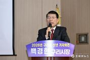 [ 포에버뉴스 김경순 기자 ] 구리시는 28일 오전 11시 10분, 구리시 여성행복센터 대강당에서 2026년 새해를 맞아 신년 기자회견을 열고, 그간의 시정 운영 성과를 돌아보며 올해 시정 운영 방향을 발표했다. 백경현 시장은 인사말에서 “지난 한 해 구리시는 어려운 여건 속에서도 말이 아닌 성과로, 계획이 아닌 실행으로 시민의 삶에 변화를 만들어 왔다”라며 “2026년에는 그 변화의 흐름을 이어 시민의 일상 곳곳에서 체감할 수 있는 성과로 완성해 나가겠다”라고 밝혔다. 말이 아닌 실행으로 증명된 변화 백 시장은 지난해 말 구리토평한강 공공주택지구 지정 완료를 주요 성과로 언급하며 “단순한 주거 공급을 넘어 직·주·락이 어우러진 구리시 미래 100년의 출발점”이라고 말했다. 이어 인창천 생태하천 복원사업이 지난해 말 본격 착공에 들어간 점을 짚으며 “도심 속 자연과 휴식 공간을 회복하는 전환점이 될 것”이라고 강조했다. 또한 토평교 하부 갤러리 조성과 대형마트 재개장을 통해 유휴 공간을 문화공간으로 전환하고, 주민 생활 불편 해소와 지역 상권 회복의 계기를 마련했다고 설명했다. 이와