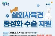 [ 포에버뉴스 김경순 기자 ] 파주시는 실외에서 사육되는 반려견의 무분별한 번식을 예방하고 유실·유기 동물 발생을 줄이기 위해 녪년 실외사육견 중성화수술 지원사업’을 2월 9일부터 추진하고 있다. 해당 사업은 농촌지역 등에서 마당이나 울타리 안에서 기르는 5개월령 이상의 반려견을 대상으로 중성화 수술비를 지원하는 사업이다. 이를 통해 무분별한 번식으로 인한 유기견 발생을 사전에 차단하고, 개체 수를 효율적으로 관리하는 것을 목표로 한다. 지원 대상은 파주시 농촌지역 등 실외에서 반려 목적으로 개를 사육하는 시민이며, 신청하려면 거주지 관할 행정복지센터 또는 파주시농업기술센터 3층 동물관리과를 방문하면 된다. 대상자로 선정되면 지정 동물 병원과 사전 협의를 거쳐 중성화 수술을 진행하게 된다. 올해 사업 규모는 총 180마리로, 1마리당 최대 40만 원(암컷 기준)까지 지원하며 가구당 10마리 이내로 제한된다. 특히 기초생활수급자, 차상위계층, 65세 이상 고령자는 우선 지원 대상이다. 이광재 동물관리과장은 “실외사육견 중성화수술 지원사업은 유기견 증가를 예방하고 시민 불편을 줄이는 데 크게 기여할