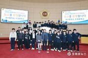 [ 포에버뉴스 오명숙 기자 ] 전라남도의회 송형곤 의원(더불어민주당, 고흥1)은 지난 12월 11일 전라남도의회 본회의장에서 열린 2025년 제26회 '청소년 의회교실'에 참여하여 고흥 대서중학교 학생들과 소통하고 격려하는 시간을 가졌다. 청소년 의회교실은 도내 청소년들이 1일 도의원이 되어 의회를 직접 운영하는 체험을 통해 지방의회의 역할과 기능을 학습하고, 민주시민 의식과 자질을 함양하기 위한 프로그램이다. 이날 의회교실에는 고흥 대서중학교 학생 27여 명이 참석하여 입교식을 시작으로 도의원과의 대화, 조례제정, 3분 자유발언, 수료식 순으로 진행했다. 특히 학생들은 임시의장, 사무처장, 의사담당관 등의 역할을 맡아 본회의를 직접 진행하며 지방의회의 기능과 역할을 생생하게 경험했다. 송형곤 의원은 고흥 대서중학교 학생들을 맞이하며 “지역의 미래를 이끌어갈 청소년들이 의회 현장에서 민주주의의 원리를 직접 체험하는 것은 매우 뜻깊은 일”이라며 “오늘의 경험이 고흥과 전라남도, 나아가 대한민국의 발전에 기여하는 민주시민으로 성장하는 밑거름이 되길 바란다”고 밝혔다.