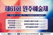 [ 포에버뉴스 방미정 기자 ] (사)원주예총은 오는 10월 16일부터 11월 2일까지 원주시 댄싱공연장 주차장 상설공연장과 치악예술관 전시실 등 원주 전역에서 시민과 함께하는 ‘제61회 원주예술제’를 개최한다. 올해로 61회를 맞이한 원주예술제는 지역 예술인들의 창작열과 예술혼이 어우러진 종합 예술축제로, 예술로 하나 되는 시민 화합의 장이자 원주의 대표 문화예술 축제로 자리매김하고 있다. 축제 기간 동안 원주예총 산하 7개 협회가 참여하여 사진, 미술, 문인, 연극, 국악, 음악 등 다채로운 전시와 공연을 선보이며, 원주의 가을을 풍성한 예술의 향기로 물들일 예정이다. 특히 개막식에서는 국악협회 공연을 시작으로 시낭송, 바이올린 연주, 대금과 발레, 전통·현대무용, 금관5중주, 퓨전국악팀 ‘작심’의 무대까지 다채로운 프로그램이 이어진다. 마지막 순서로는 출연자와 관객이 함께 노래를 부르며 예술로 하나 되는 특별한 순간을 선사할 예정이다. 박혜순 문화예술과장은 “61년의 역사와 전통을 이어온 원주예술제는 예술인과 시민이 함께 만들어가는 축제이자, 원주의 문화적 저력을 보여주는 상징적인 행사”라며,