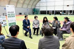 [ 포에버뉴스 김경순 기자 ] 조용익 부천시장이 생활 속 불편을 직접 듣고 해결 방안을 찾는 ‘틈만나면, 현장속으로’를 지속하며, 현장 중심 행정에 집중하고 있다. 시장이 현장에서 직접 시민을 만나고, 시민이 체감하는 생활환경 개선을 위해 속도를 내겠다는 의지다. 17일 시청에서 열린 네 번째 ‘틈만나면 현장속으로’에서는 체육시설, 재건축, 교육환경, 교통 등 다양한 분야 현안에 대해 시민 40여 명과 활발한 소통이 이뤄졌다. △오정레포츠센터 테니스코트 리모델링 △괴안동 삼익3차아파트 재건축 △부천혜림학교 증·개축 과정의 건폐율 완화 △법인택시 감차보상금 상향 등 4건이다. 지난 2019년 옥상 공간을 활용해 조성된 오정레포츠센터 테니스코트는 바닥 포장재 노후화로 인한 균열, 조명과 배수 등의 문제로 이용자들의 불편이 지속돼 왔다. 이에 시·도의원과의 긴밀한 협의를 통해 국·도비 등 예산을 마련하고 구조물 안전성 검토를 거쳐 바닥 보수와 조명·배수시설 등 정비를 우선 추진할 계획이다. 조 시장은 “안전한 생활체육 공간 조성은 시민 삶의 질과 직결된다”며 “새로운 면을 확보하는 방안을