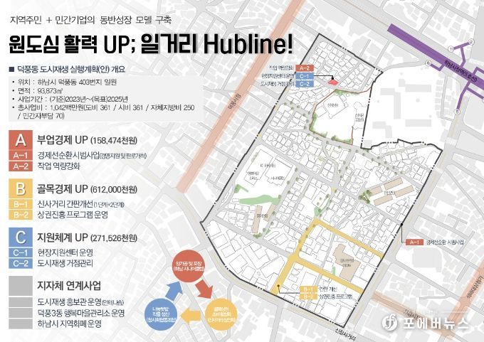 이번 공모에 선정된 지역은 덕풍전통재래시장과 신장사거리 골목상권의 배후 저층주거지(덕풍동 403번지 일원)이며, 신사거리 상인회, 하남시니어클럽 등 지역공동체 활동이 활발한 곳이다.