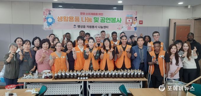 [ 포에버뉴스 최진성 기자 ] 평택시 팽성읍 자원봉사 나눔센터는 지난 18일 주한미군과 함께하는 ‘사랑의 생필품 만들기 및 나눔 행사’를 진행했다.