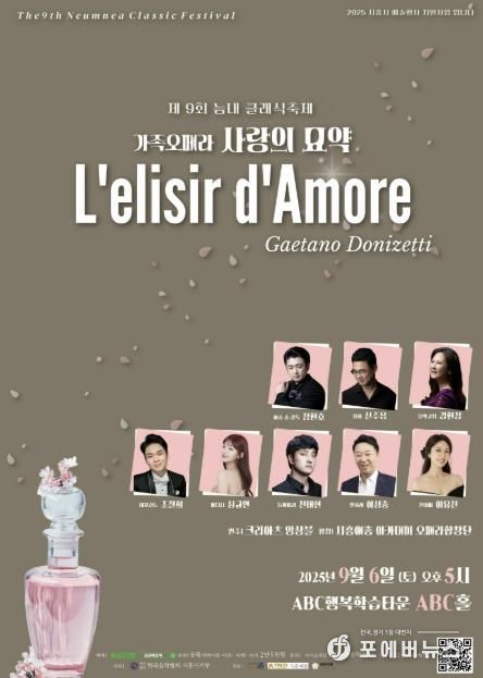 올해로 9회째를 맞는 늠내클래식 축제는 매년 수준 높은 클래식 음악회를 선보이며 지역 문화예술 발전에 기여해 왔다. 올해는 지난해에 이어 정통 오페라 ‘사랑의 묘약’ 공연을 통해, 시민들과 함께 만드는 더 의미 있는 무대를 선보일 예정이다.