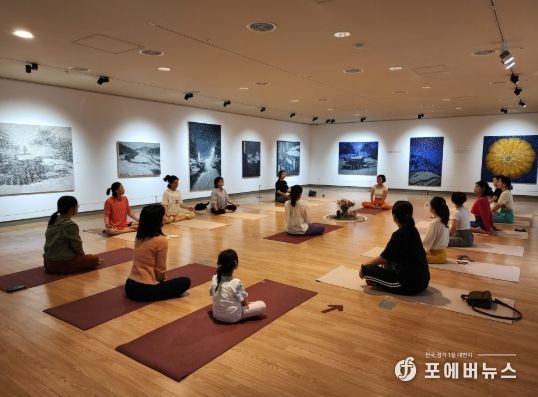 먼저 학예사가 전시의 기획 의도와 주요 작품을 설명하며 참여자들의 이해와 몰입을 도왔다. 이어 지역 체험 전문업체 오로시프로젝트 소속 강사의 지도로 단계별 요가 프로그램을 본격 진행했다.