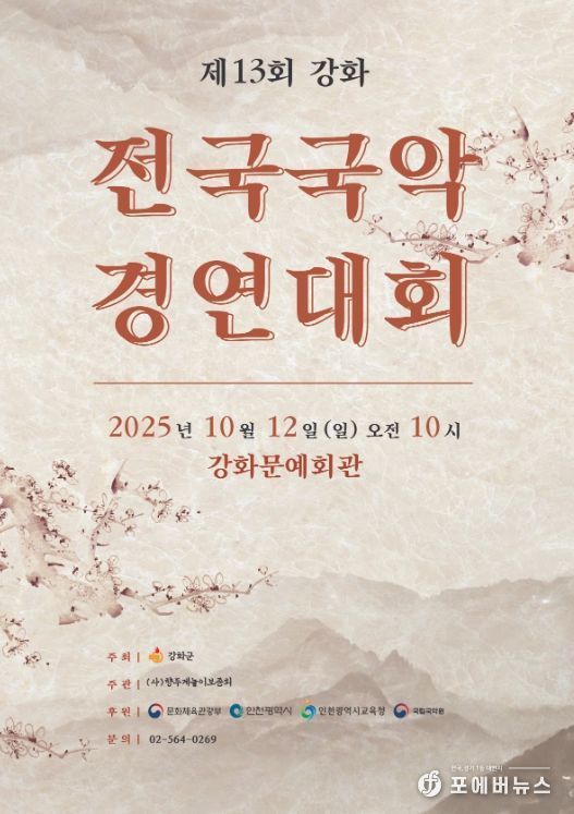 [ 포에버뉴스 김경순 기자 ] 강화군은 오는 10월 12일 강화문예회관에서 ‘제13회 강화 전국 국악경연대회’를 개최한다고 밝혔다.
