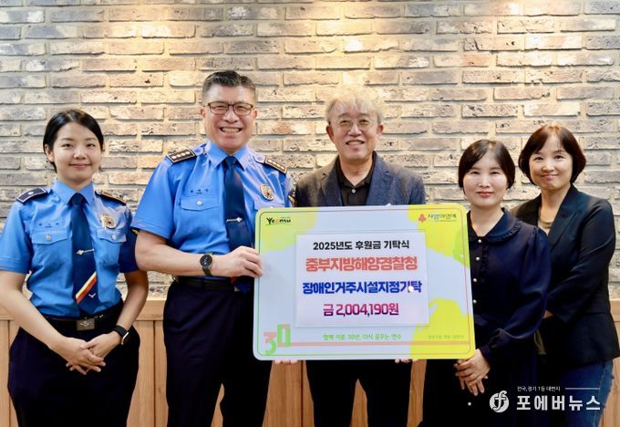 [ 포에버뉴스 김경순 기자 ] 중부지방해양경찰청은 지난 1일 연수구청에서 다가오는 추석 명절 지역사회 나눔 실천의 일환으로 중증장애인 거주시설 ‘밝은 마음’에 기부금을 전달했다고 밝혔다.