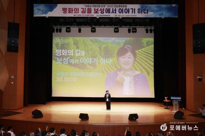 [ 포에버뉴스 오명숙 기자 ] 보성군은 지난 10일 보성군문화예술회관에서 개최된 ‘서영교 국회의원 초청 2025 전남평화포럼’이 군민 700여 명이 참석한 가운데 성황리에 마무리됐다고 밝혔다.