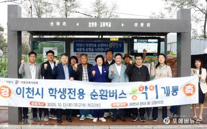 [ 포에버뉴스 박정배 기자 ] 이천시는 교통취약지역 중·고등학생들의 편리한 통학을 지원하기 위해 추진해 온 ‘학생통학 순환버스 지원사업’을 10월 13일 정식 개통했다고 밝혔다.
