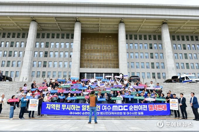 [ 포에버뉴스 오명숙 기자 ] 여수시의회는 10월 14일 MBC본사와 국회에 항의 방문하며 여수MBC 순천 이전 철회를 강력히 촉구했다.