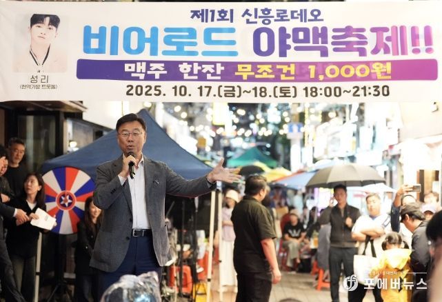 [ 포에버뉴스 김경순 기자 ] 신상진 성남시장은 17일 저녁 신흥로데오거리 종합시장 먹자골목에서 열린 ‘제1회 신흥로데오 비어로드 야맥축제’ 개막식에 참석해 관계자들을 격려하고 시민들과 소통했다.