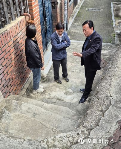 [ 포에버뉴스 김경순 기자 ] 심재억 강북구의회 도시복지위원장은 지난 2025년 10월 21일, 송천동 내 파손된 계단이 있는 골목길(삼양로22길12 앞)을 강북구 도로관리과 담당자와 방문하고 시설 개선을 촉구했다.