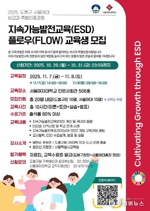 [ 포에버뉴스 김경순 기자 ] 서울 도봉구가 서울여자대학교와 함께 2025학년도 2학기부터 공동으로 ‘도봉-대학 ESD(지속가능발전교육) 캠퍼스’ 일환으로 ‘비교과 특별인증과정’을 운영한다.