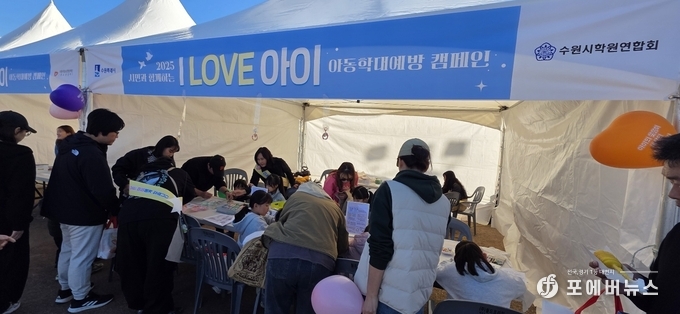 수원시학원연합회(회장 고진석)는 지난 11월 1일(토) 화성행궁 광장에서 수원시 아동돌봄과 주관으로 열린 시민과 함께하는 'I LOVE 아이' 캠페인 행사에 참여해 아동보호를 위한 다양한 활동을 펼쳤다고 밝혔다.