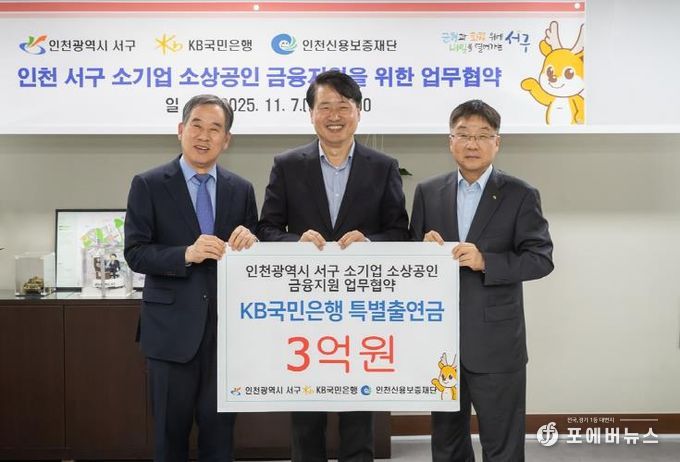 [ 포에버뉴스 사공선 기자 ] 인천 서구는 지난 7일 국민은행, 인천신용보증재단과 함께 45억원 규모의 ‘소기업·소상공인을 위한 금융지원 협약보증’ 업무 협약을 체결했다고 밝혔다.