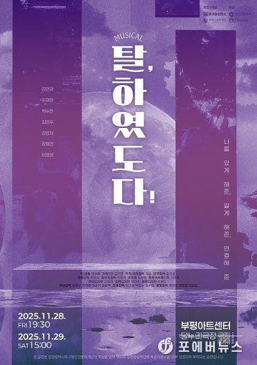 [ 포에버뉴스 김경순 기자 ] 부평구 문화재단은 오는 28일과 29일 이틀간 부평아트센터 달누리극장에서 공연장 상주단체 ‘돗가비콘텐츠’와 함께 창작뮤지컬 ‘탈, 했도다!’ 공연(쇼케이스)을 선보인다.
