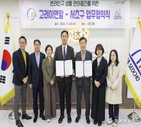 [ 포에버뉴스 김경순 기자 ] 서울 서초구는 26일, 반려인구의 지속적 증가에 대응해 반려인의 생활편의를 높이고 쾌적한 공원 환경을 조성하기 위해 환경관리 전문업체 ㈜고려이앤알과 '반려견 분변수거함 확대 설치 및 관리에 관한 업무협약(MOU)'을 체결했다고 밝혔다.