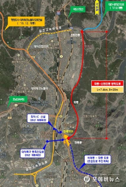 [ 포에버뉴스 사공선 기자 ] 대전시는 대덕구 연축동~신탄진 용정초교를 잇는 ‘와동~신탄진동 도로개설사업’이 22일 기획재정부 재정사업평가위원회 심의를 거쳐 예비타당성조사 대상사업으로 선정됐다.