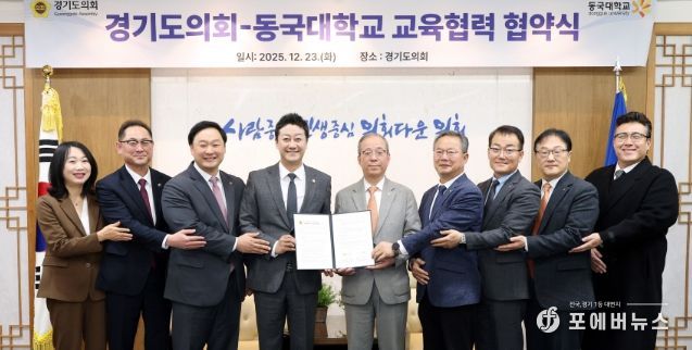 [ 포에버뉴스 김경순 기자 ] 경기도의회는 23일 오전 의장 접견실에서 동국대학교와 교육협력 및 학술교류를 위한 업무협약(MOU)을 체결했다.