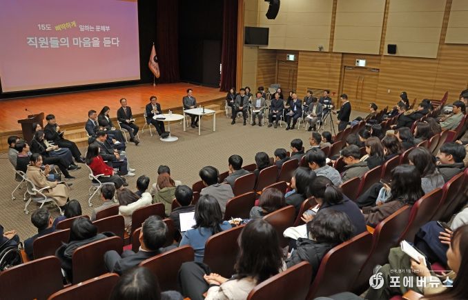 [ 포에버뉴스 김경순 기자 ] 문화체육관광부 최휘영 장관은 새해를 맞이해 1월 5일 오전 정부세종청사 15동 대강당에서 문체부 직원들과 함께 ‘업무 효율화를 위한 직원과의 대화(타운홀 미팅)’를 진행했다.