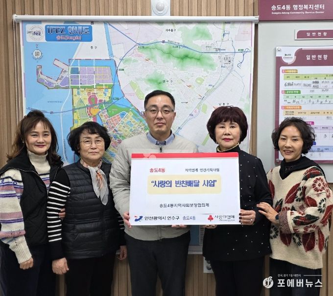 [ 포에버뉴스 김경순 기자 ] 연수구 송도4동 지역사회보장협의체(위원장 박일희·양만상)는 12월까지 ‘사랑의 반찬배달 사업’을 추진한다.