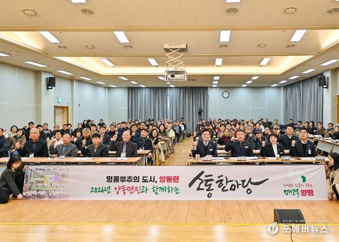 이어 2026년 양동면 도약을 위한 향후 추진 계획으로 △경의중앙선 전철 지평–양동–원주 간 연장 △채움플러스 복합센터 및 기초생활거점 조성사업 △흙향기 맨발길 및 양동면 레포츠공원 조성 △시장별 맞춤형 상권 활성화 및 양평사랑상품권 발행 등 동부권 발전과 민생경제 우선을 위한 주요 정책 방향을 제시했다.