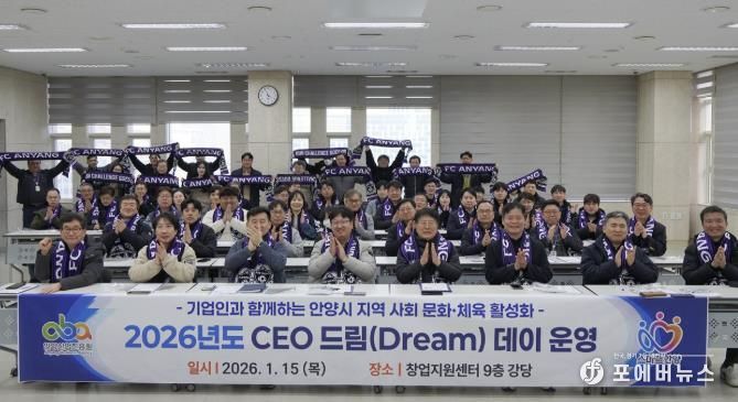 [ 포에버뉴스 김경순 기자 ] 안양산업진흥원은 15일 오후 3시30분 안양창업지원센터 강당에서 관내 기업인 150여 명을 대상으로 지역사회 문화·체육 활성화를 위한 ‘2026 CEO 드림(Dream) 데이’를 열었다.
