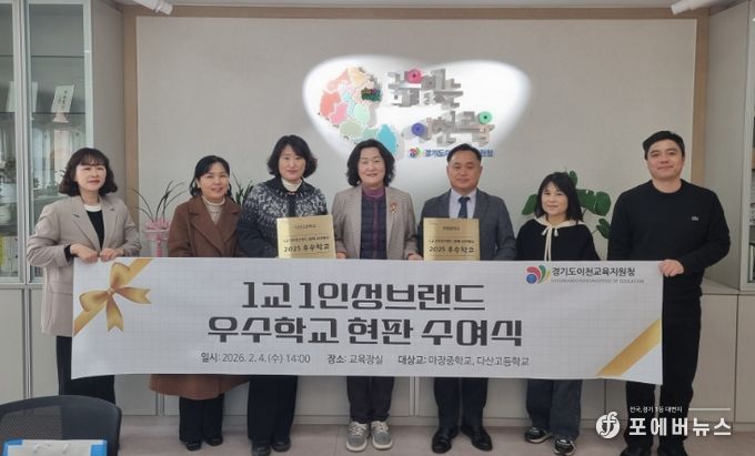 [ 포에버뉴스 박정배 기자 ] 경기도이천교육지원청은 2월 4일 교육장실에서 『2025 1교 1인성브랜드 우수교 현판 수여식』을 개최했다.