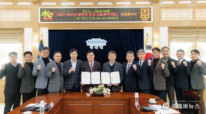 협약서는 2027~2031년 춘·추계 전국 고등축구대회의 개최 시기와 대회의 성공적인 개최를 위한 합천군과 대한축구협회의 상호협력 내용을 담고 있으며, 대회는 내년 춘계대회부터 2031년 추계대회까지 5년간 합천군 군민체육공원 인조구장 일원에서 개최된다.