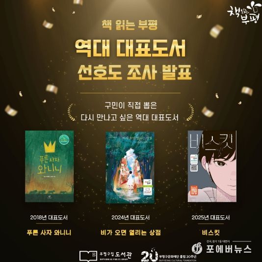 투표 결과, 가장 많은 선택을 받은 도서는 ▲푸른 사자 와니니(이현 지음, 2019년 대표도서) ▲비가 오면 열리는 상점(유영광 지음, 2024년 대표도서) ▲비스킷(김선미 지음, 2025년 대표도서)이다.
