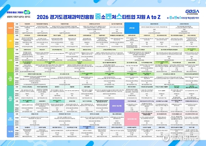 [ 포에버뉴스 김경순 기자 ] 경기도경제과학진흥원(이하 경과원)은 도내 중소·벤처·스타트업이 각종 기업지원 사업을 한눈에 확인할 수 있도록 ‘2026 경기도경제과학진흥원 중소·벤처·스타트업 지원사업 총람표’를 제작·배포했다고 밝혔다.